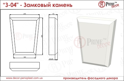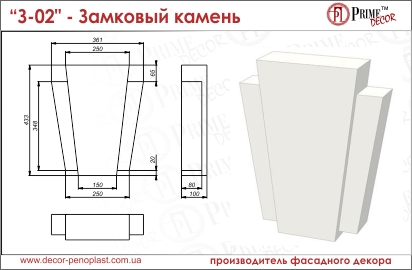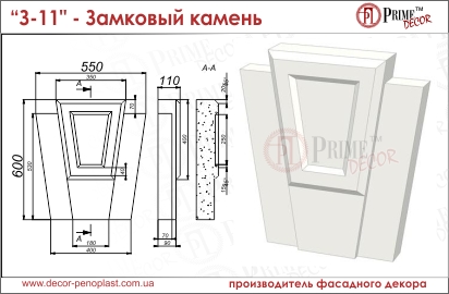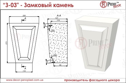 Материал: форма замкового камня изготовлена из пенопласта 35ой плотности и покрыта мраморным ударопрочным защитным слоем белого цвета.