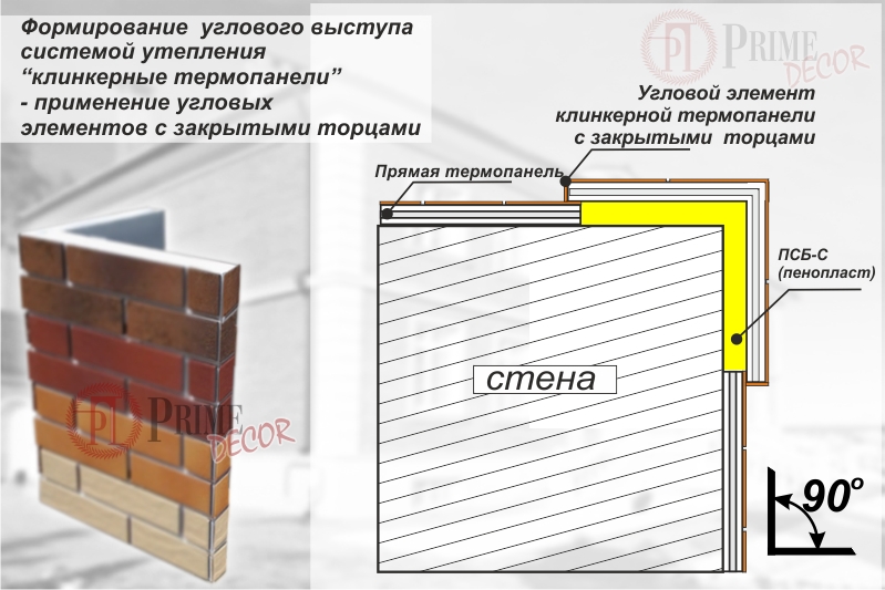 Угловая термопанель с закрытыми торцами вертикальных сторон, разработана для воплощения архитектурного решения – выделить угол фасада здания не только в цветовом исполнении, но и в объеме.